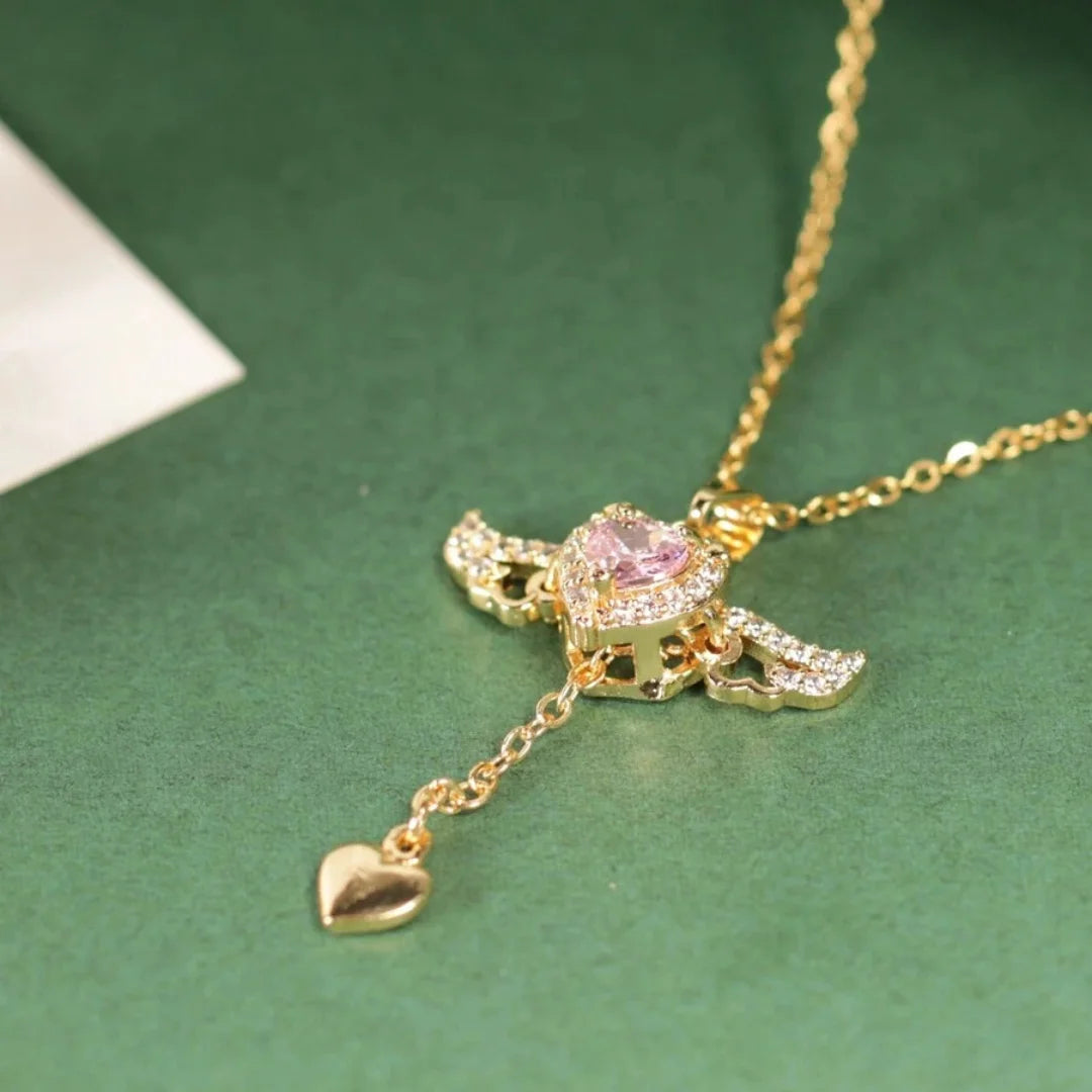 Su dije con alas y corazón brillante destaca por su diseño angelical, perfecto para regalar o para complementar cualquier look con un toque especial.