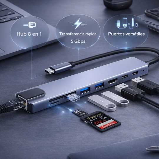HUB USB-C 8 en 1 - Potencia y Versatilidad en un Solo Dispositivo